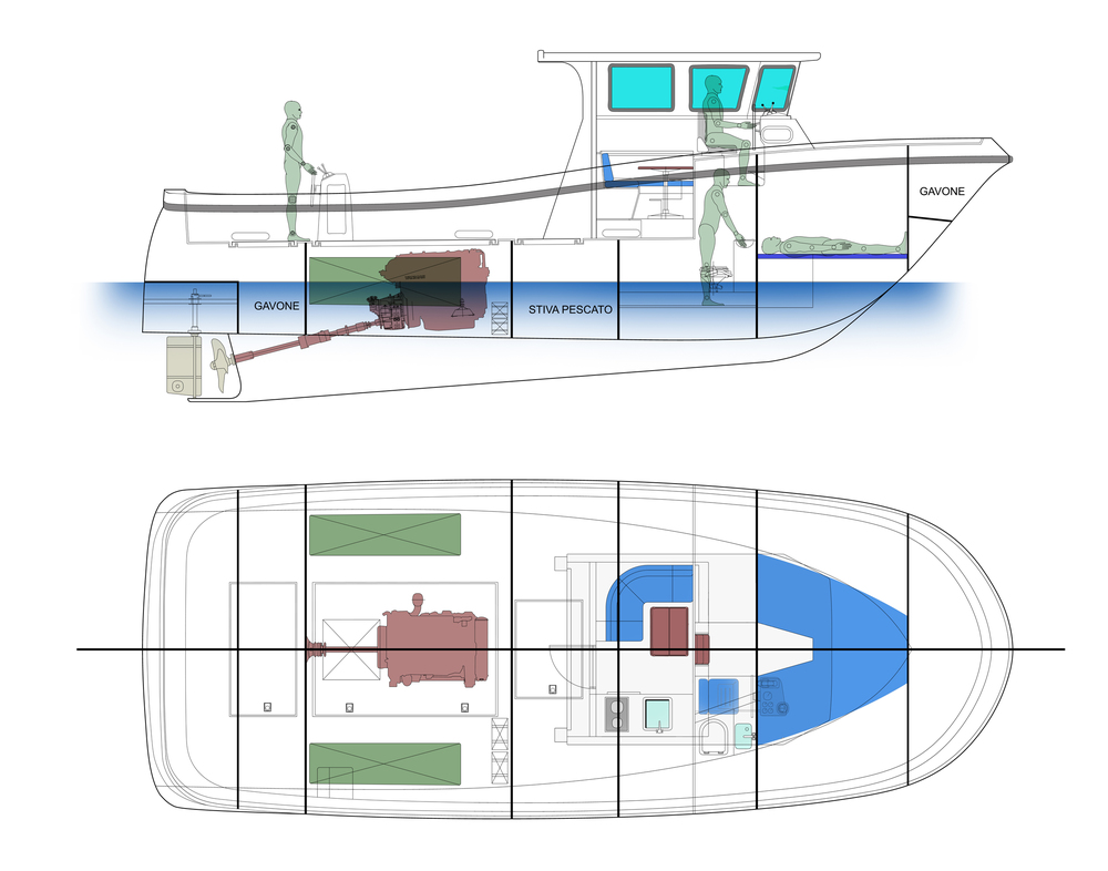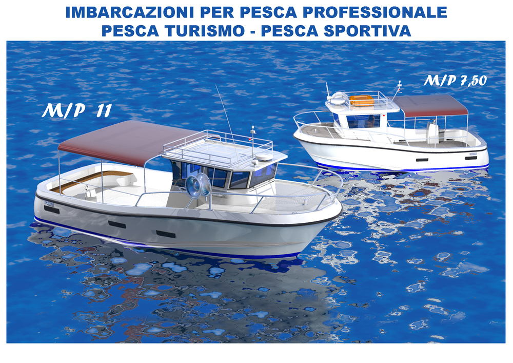 Imbarcazione realizzabile su commessa. Scocca in vetroresina: Imbarcazione personalizzabile per qualsiasi tipo di pesca. GT5 modificabile durante la costruzione. a seconda delle esigenze